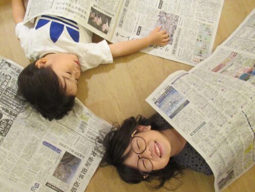 大きい新聞紙を何枚も集めて「おうちにした!」「おふとんだよ~!」とイメージを先生やおともだちと共有しながらごっこ遊びを楽しんでいましたよ🥰