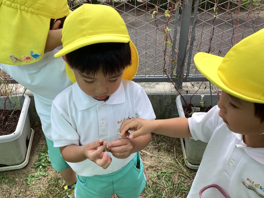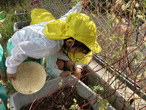 そんなお友だちの姿を見て「種どこにあるのー?」と一緒になって一生懸命集めていました!