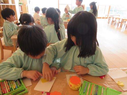 どんなクリスマスカードにするのか話し合いながら取り組む姿がありました🎄🎅