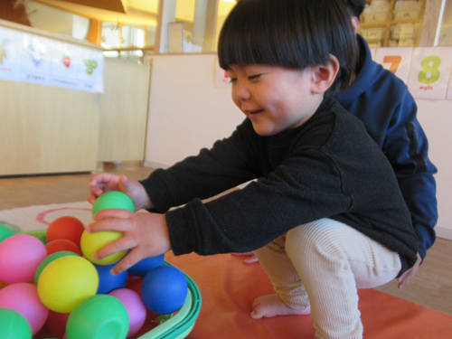 カラーボールを1つ持ちながら進んでいきゴールまで運んでいきます!💨