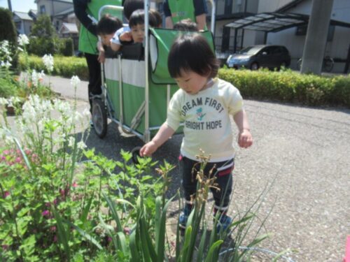 お外はぽかぽか、気持ちいいね🌞 お花もいっぱい🌷 きれいだね。