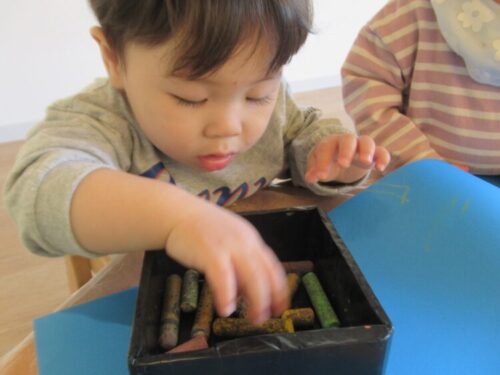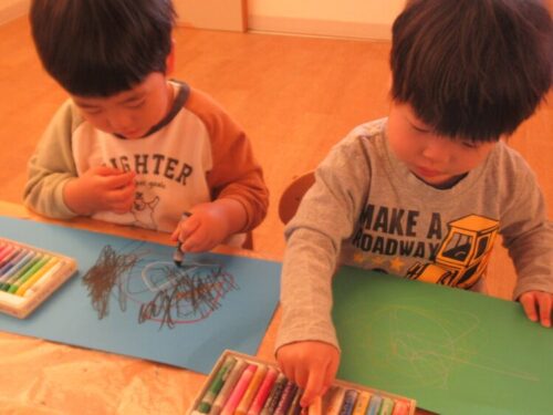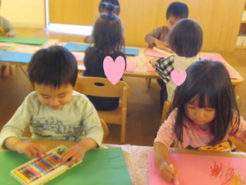 製作ではこいのぼり作りに挑戦🎏 何色のクレヨンで模様を描こうかな?