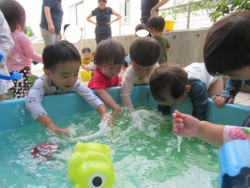 泡を作ると手足を一生懸命ゴシゴシ洗って水で流すごっこ遊びをする子もいましたよ![]()