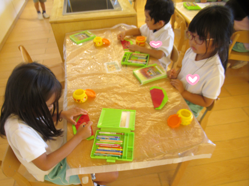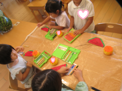 本物のスイカを横目に「美味しそうだね🤗」と楽しそうに作っていましたよ💕