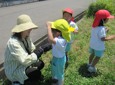 城田公園に植物探検行きました✨保育園を出る前にどんな植物があるのか写真を見ながら「私これ見つける」と指をさしながらお友だちと話す姿もありました😊外が熱かったので日陰に入って植物探しをしているお友だちもいましたよ👀