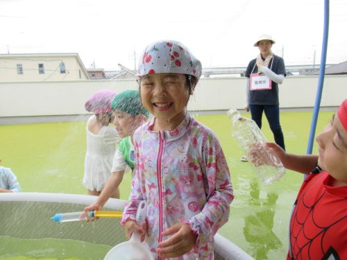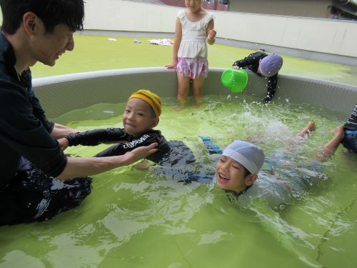 プール遊びが終わった後はプールの水をざぶーん!!と大波がくるのを日向ぼっこしながらみんなワクワクして待っていました😆✨
