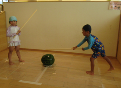 今日は待ちに待っていた【スイカ割り】をしました🍉