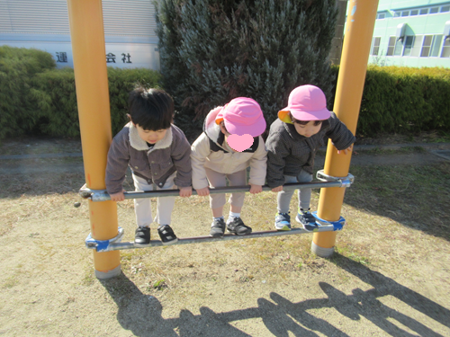 唯一の遊具、とても高いうんていは登ることしかできませんが、