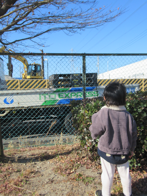 公園からはショベルカーが見えるのですが、公園に着く前から気付いていた様子