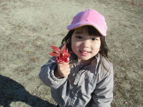 きれいな真っ赤のはっぱをたくさん摘んで