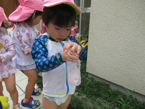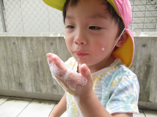 泡と色水を入れて しゃかしゃか! きれいに泡だったね!😲
