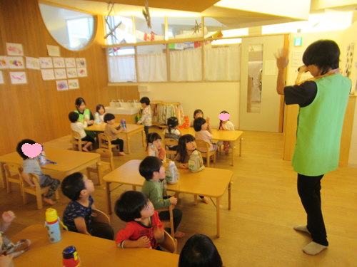 先生の見本を見せると「ぼうえんきょー!」と声が聞こえてきましたよ😳