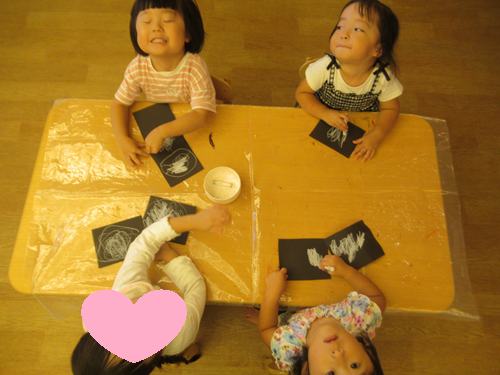 今日は 黒い画用紙に 白いクレヨンで 描いてみました🤍