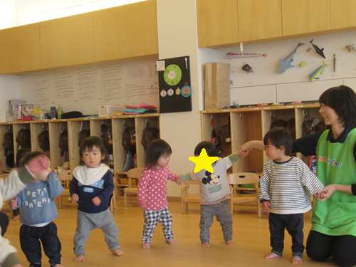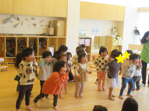 今日は、お兄さんお姉さんの広いお部屋に行って、みんなでリズム体操やお歌を歌って遊びました✨