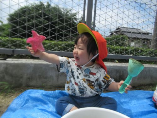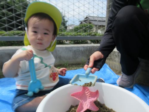 砂を触って、砂の感触を楽しんでいるおともだちもたくさんいて、砂場のいろいろな遊具にも興味を示して嬉しそうに遊んでいました👀✨