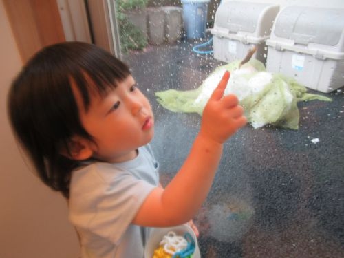 窓から見える雨をじーっと眺めたり、窓につく雨のしずくをなぞったりしてお部屋の中から雨の日を楽しんでいましたよ😊☔💦