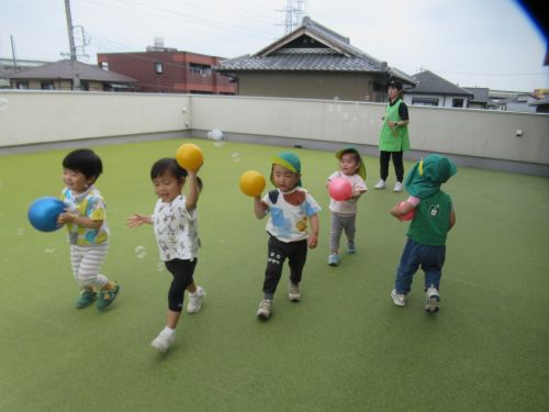あひる組のみんなもボールやシャボン玉で楽しく過ごしました😄