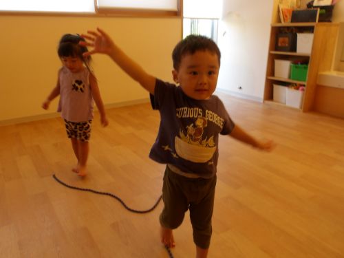 今日はへびのような綱を使って綱渡りをしましたよ😀⭐