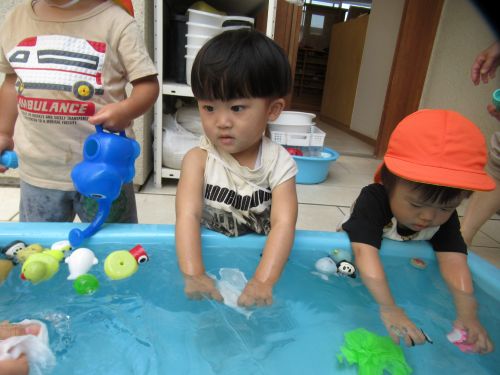自分ですきなおもちゃを見つけてそれぞれお水遊びを楽しんでいました✨