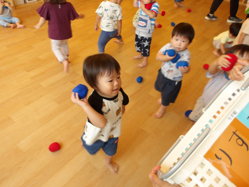 玉に慣れたところで…みんなで玉入れをしてみよう~!✨