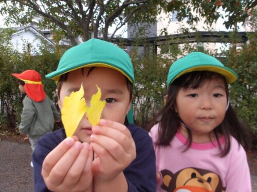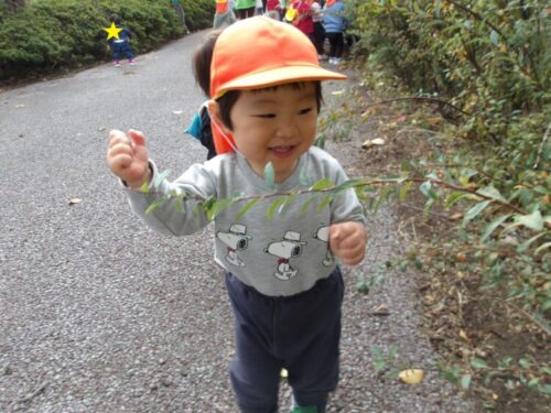 この葉っぱ、穴が空いててオバケみたい👻😲 木の皮も見つけたよ🌲🌲