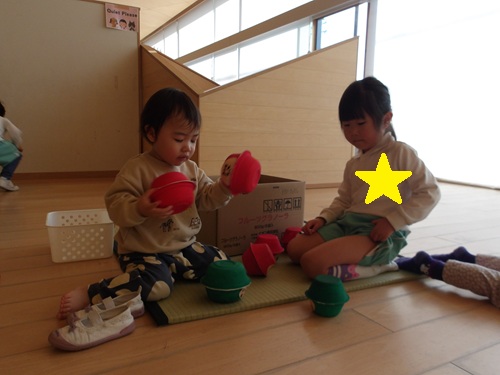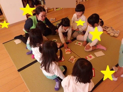 室内あそびでは、かるたやだるまつみで遊んでいるお友だちがいましたよ✨