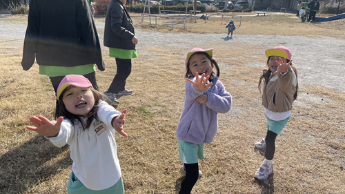 つかまえたあと、「今度は3人で先生つかまえる!」と言って