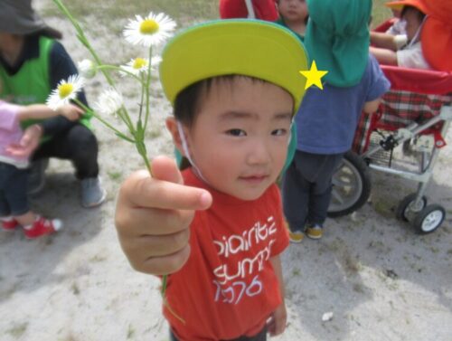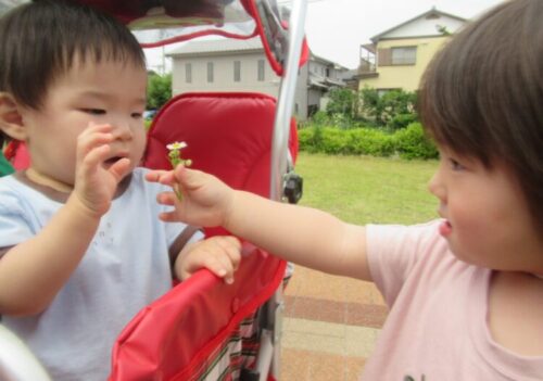 小さな白いお花を見つけると、カートに乗っているお友だちに「どうぞ」とおすそ分けする優しいお友だちの姿も見られました💖