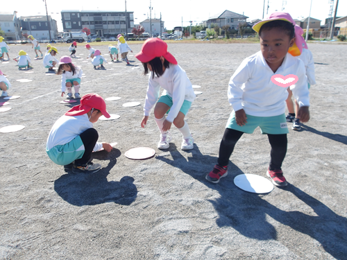 オータムフェスティバルまであと少し! 〈うさぎ・ぱんだ・きりん〉 今日は道風公園でオータムフェスティバルの遊びを行いました!✨ ダンス、オセロや玉入れなど元気に行いましたよ!💪✨ 土曜日も元気にやろうね!✨ みんな大きく声が出ていてたのしく行えましたよ!! カテゴリ: 勝川(2~3歳), 勝川(4~5歳) タグ: