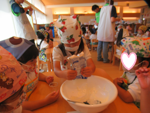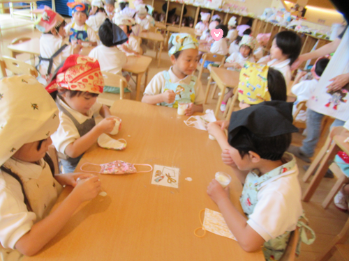 みんなでご挨拶をして「おいしいね🤗💕」「つめた!!😆」と楽しそうに