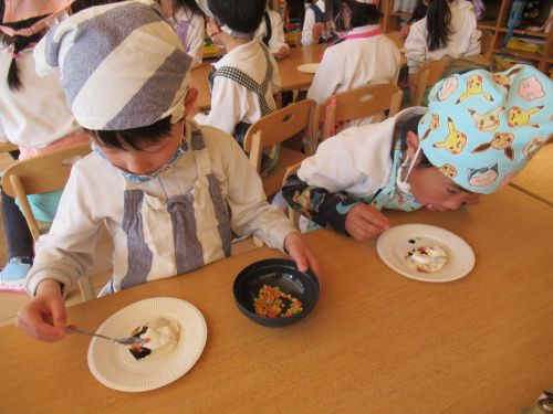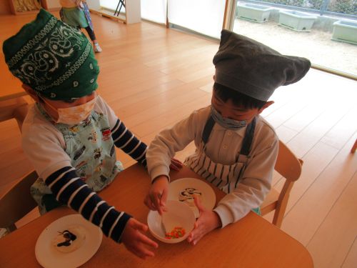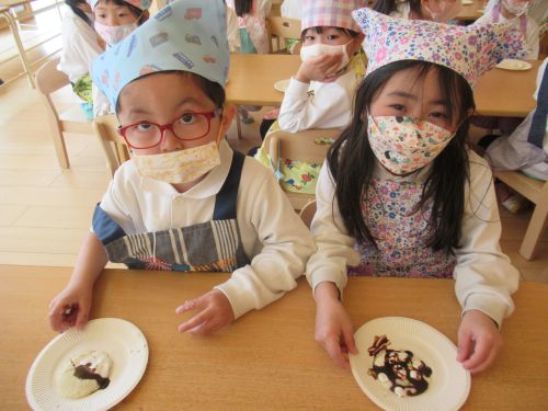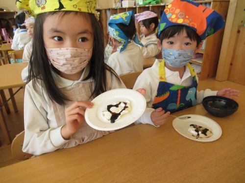 器用にチョコレートソースをハート型にかけて見せてくれるお友だちもいましたよ👀✨