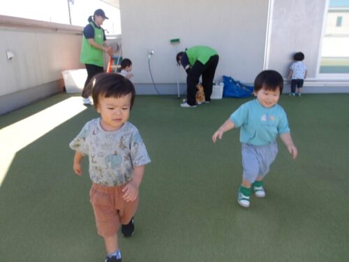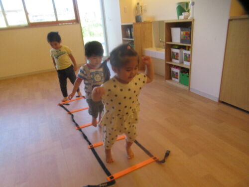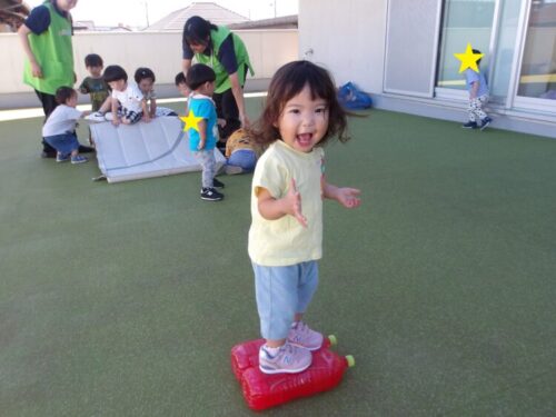 ひよこ・りす組は、今日は屋上園庭でサーキット遊びをしました😊