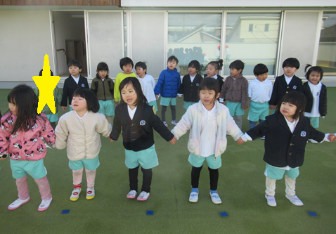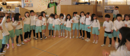 お友だちと仲良く手を繋いで元気よくお歌も歌っています🎵