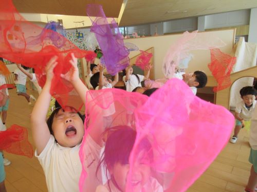 リトミックスカーフを花火に見立ててドーン!!!とスカーフを打ち上げて楽しく過ごせました😊💖