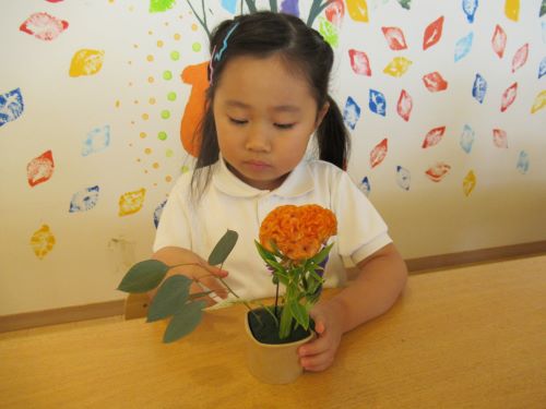 自分たちで自由におはなを選んで生けるときには仲良しのお友だちと一緒にお花を選んできてそっくりのフラワーアートを完成させている子たちもいましたよ🤗✨