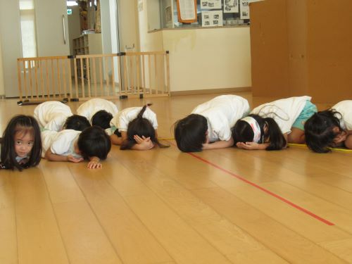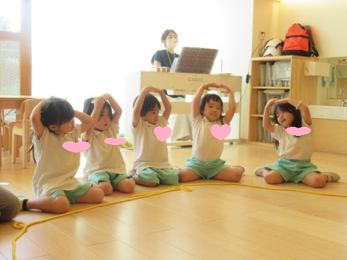 リトミックではお歌をうたいながら満月をからだで表現してみたり、