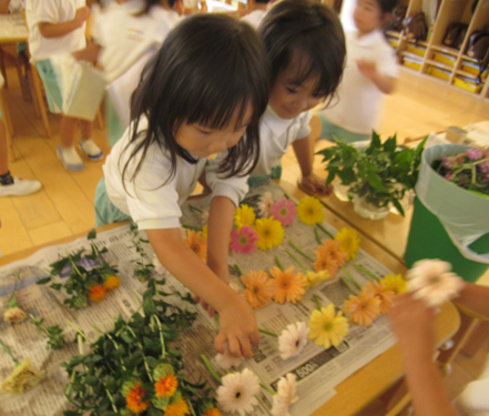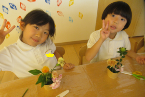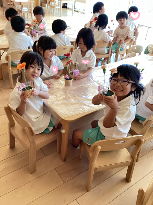 きりん組さんは自分たちで選んだ花の枝の長さを調節して、ハサミで切ったりとお花屋さんみたいでしたよ🌼
