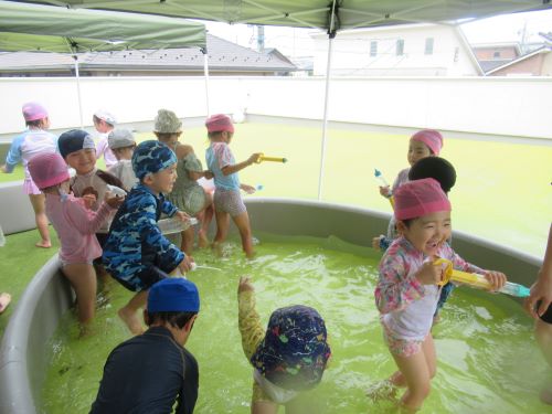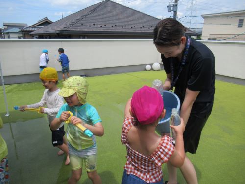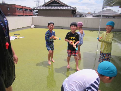 きりんぐみさんは水鉄砲を使ってひたすら先生に攻撃をしていました😆💦