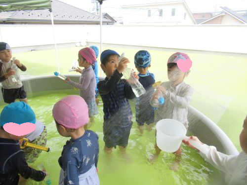 うさぎぐみさんは水鉄砲がお気に入りなようでお友だち同士で掛け合って楽しんでいました😆💦