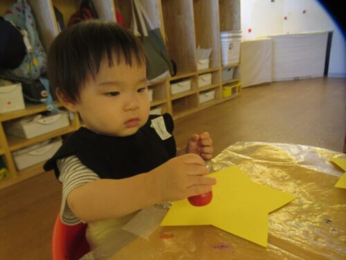 七夕製作がまだできていなかった子は、ボール遊びの合間に製作もしましたよ🌟 上手にクレヨンできるかな・・・?