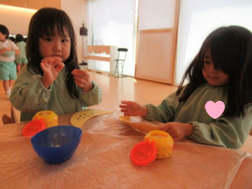 「先生どんぐらいのり付けるの?」と聞きながら行うことができました![]()