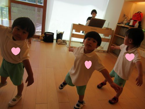 リトミックでは、季節の曲に合わせて身体を動かしたり、