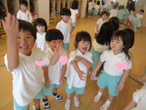 水遊びのイメージをしながらお友だちと水をかけ合っていました![]()