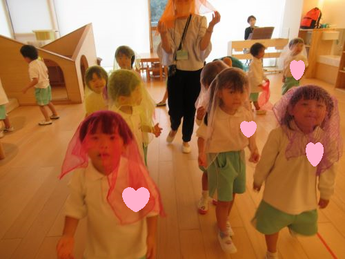 高い音、低い音を聞き分けて動きを変化させるのですが、音が変わった瞬間に反応するお友だちが増えてきました✨