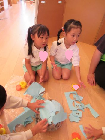 「ここ貼って!」と言い合い、新聞紙が見えなくなるまで集中していましたよ🎵