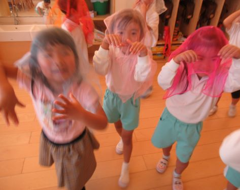 音をよく聴き、音に合わせてスカーフから顔をだします♪