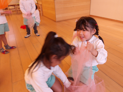 リトミックスカーフを落ち葉に見立て曲に合わせて遊びました🍂✨