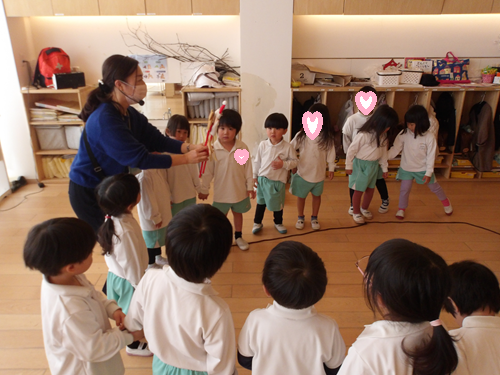 ぱんだ組さんはトナカイ役とサンタさん役のペアになって音楽に合わせて身体を動かしました🎅