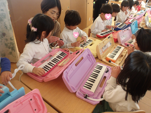 きりん組さんは、ピアニカの吹き方や姿勢を教えてもらいました🎶