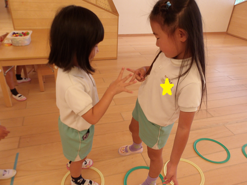 お部屋で遊んだお友だちは、じゃんけん陣取りゲームをしました😄